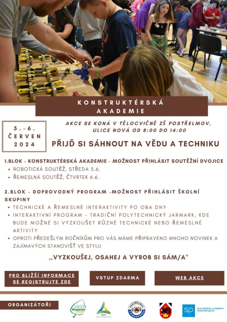Dovolujeme si Vás pozvat na 4. ročník Konstruktérské akademie, který proběhne v obou sálech postřelmovské tělocvičny a přilehlých prostorech.