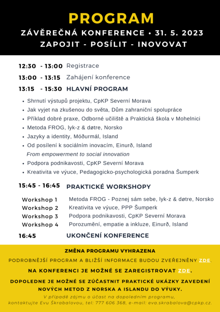 ‼️ Již za 14 dnů se koná Závěrečná konference projektu „ZAPOJIT – POSÍLIT – INOVOVAT!“